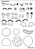 Barnen kan välja att rita ett eget monster eller klippa ut monsterdelar och limma fast. Färglägg sedan monstret.